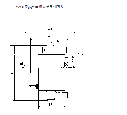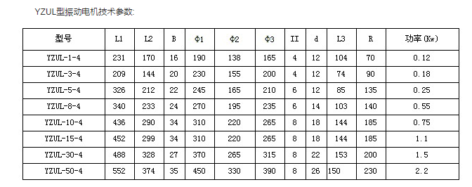 YZUL系列立式振動電機技術參數及外形尺寸表: